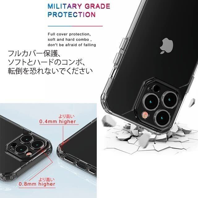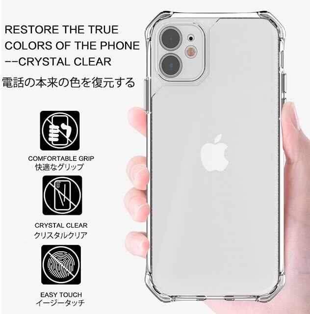 衝撃に強いTPU素材を使用、ラウンド加工を加えて外部の衝撃から本体を守ります ストラップホール付き。 柔らかいのに変形しにくく、長く使うと黄色く変色しますがこのケースは変色しにくく透明度を保ちます。 全方面からの衝撃に備え、あなたのiPhoneを守ります 画面とカメラレンズを保護するために前面と背面の境界を高くしています これにより、iPhoneを平らな場所に置いても表面が直接接地する事がないため擦り傷を最小限にしてくれます 各ボタンも保護されていますが押しやすいです 充電口もケーブルと干渉することなくスムーズにささります。