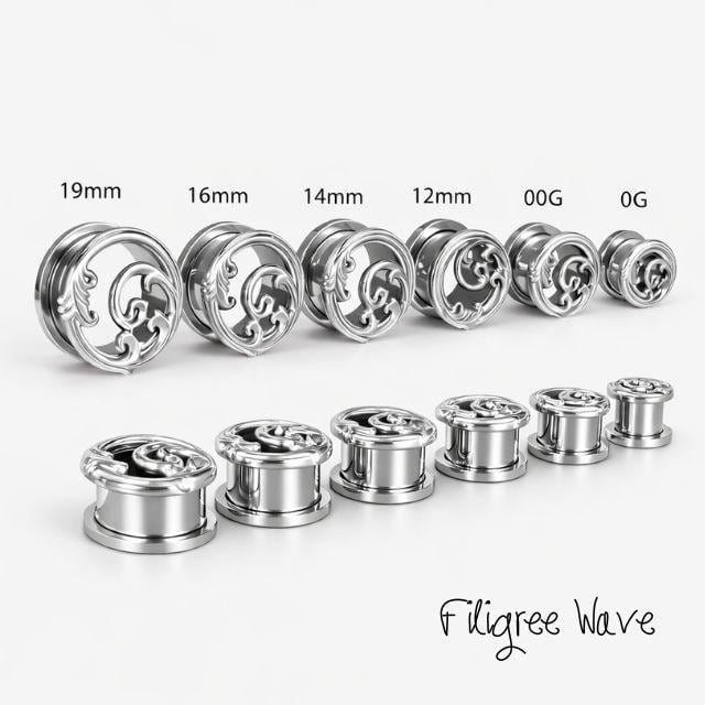 ボディピアス 12mm 14mm フィリグリーウェーブ ステンレス フレッシュトンネル 拡張ピアス
