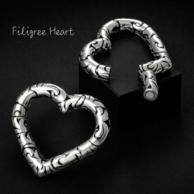 ワンタッチピアス 4G フィリグリーハート 簡単マグネット クリッカー リングピアス 大きめ 拡張ピアス ボディピアス
