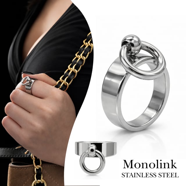 Monolink ステンレス 指輪 リングピアス ユニセックス デザインリング 金属アレルギー つけっぱなし サージカルステンレス