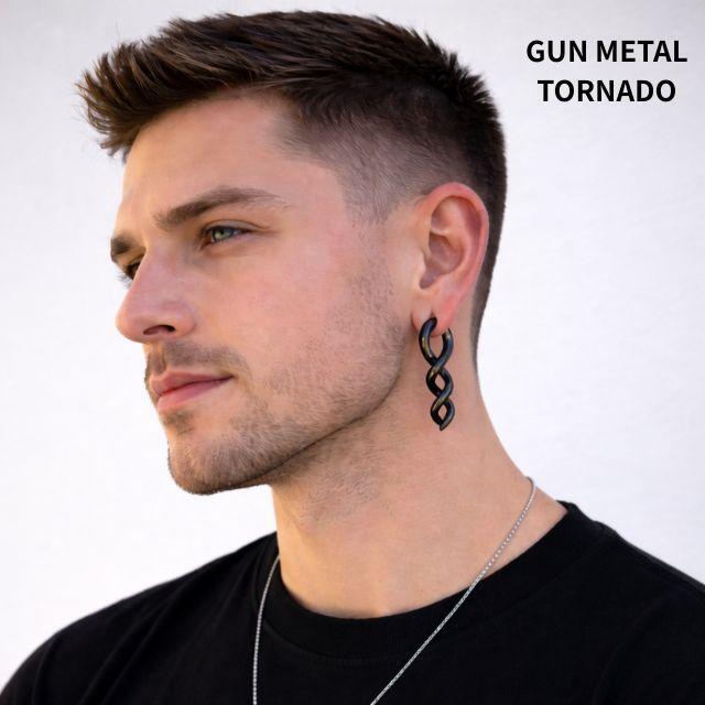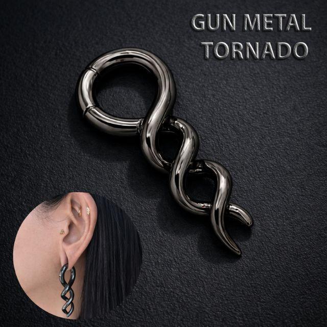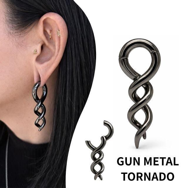 ワンタッチピアス 2G ガンメタカラー トルネード ホールトゥ 銅ピアス 簡単マグネット クリッカー リングピアス 大きめ 拡張ピアス ボディピアス