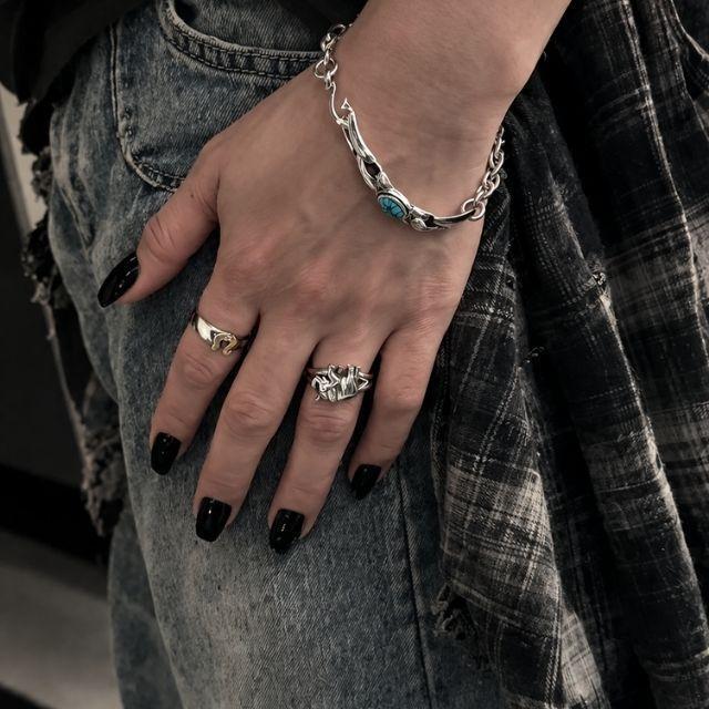 シンプルなチェーンに映える一点アクセントで、コーディネートを一気にこなれた印象に仕上げます。