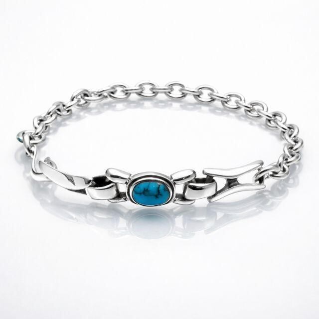 ブレスレット シルバー925 ターコイズチェーン ブルーターコイズ オーバルストーン シルバーアクセ