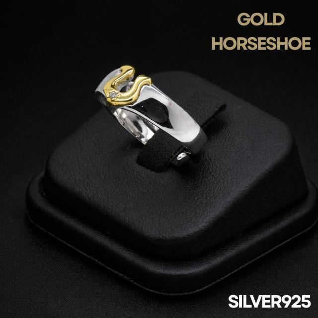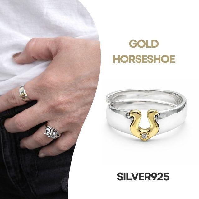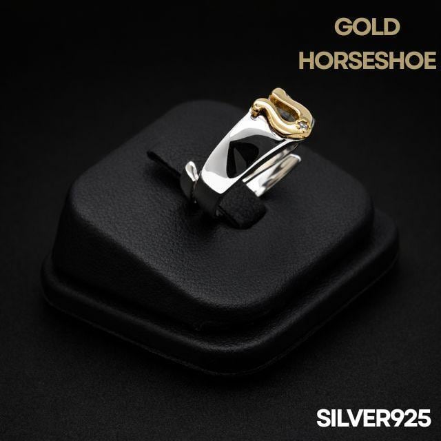 ・シルバー925の上品な輝きに、ゴールドカラーのホースシュー(馬蹄)を組み合わせたコンビデザインリング。