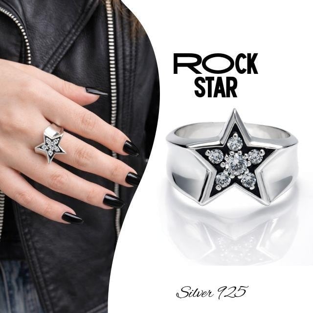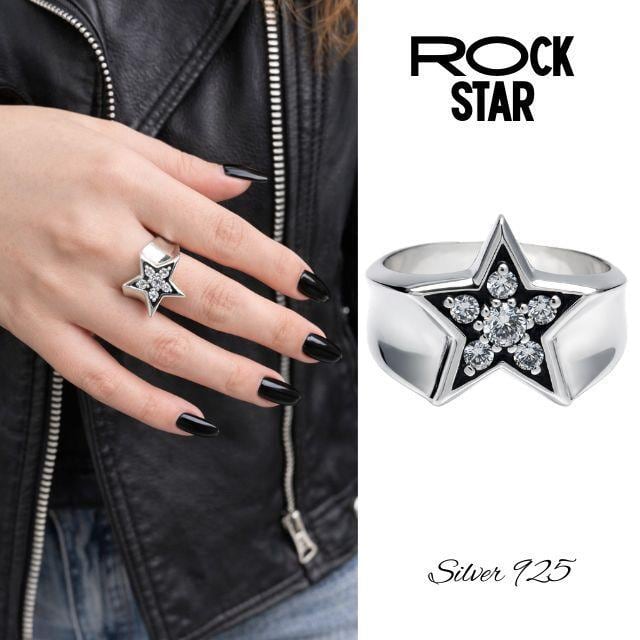 指輪 シルバー925 ロックスターリング ジルコニア 星リング メンズ ごつめ 指輪 ユニセックス デザインリング
