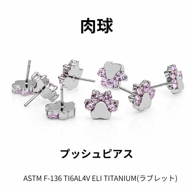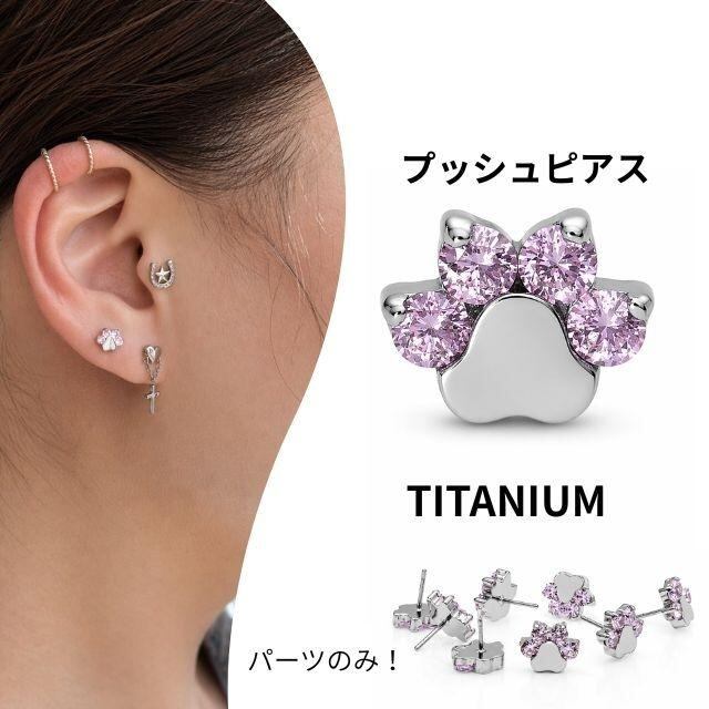 プッシュピアス パーツのみ 20G 18G 16G 14G 10G 8G ライトピンク 肉球 チタンピアス 金属アレルギー対応 軟骨ピアス トラガス ヘリックス