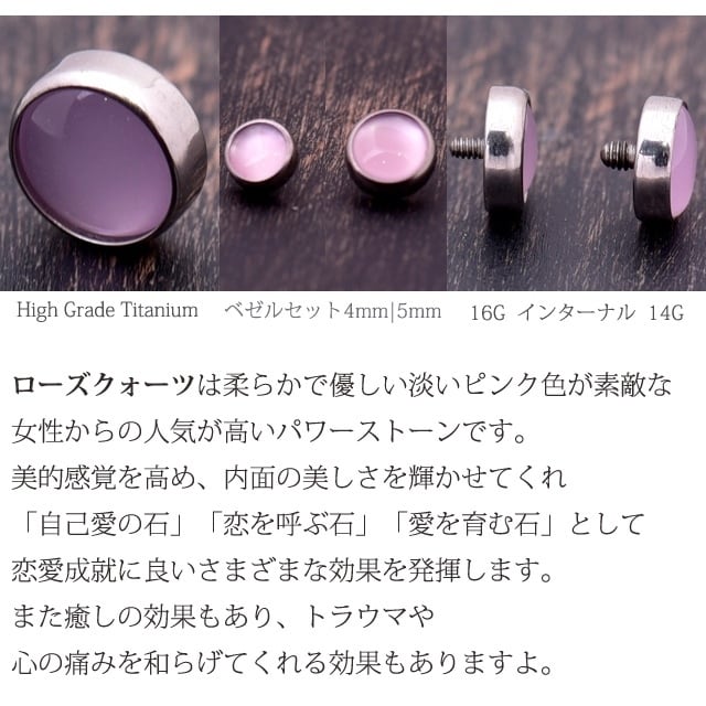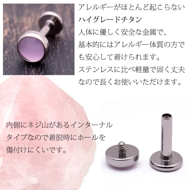 ローズクォーツ ボディピアス 18g 16g 14g チタンピアス 金属アレルギー対応 つけっぱなし インターナル ラブレットスタッズ 軟骨ピアス トラガスピアス ヘリックス | BONshape ボディピアス専門店