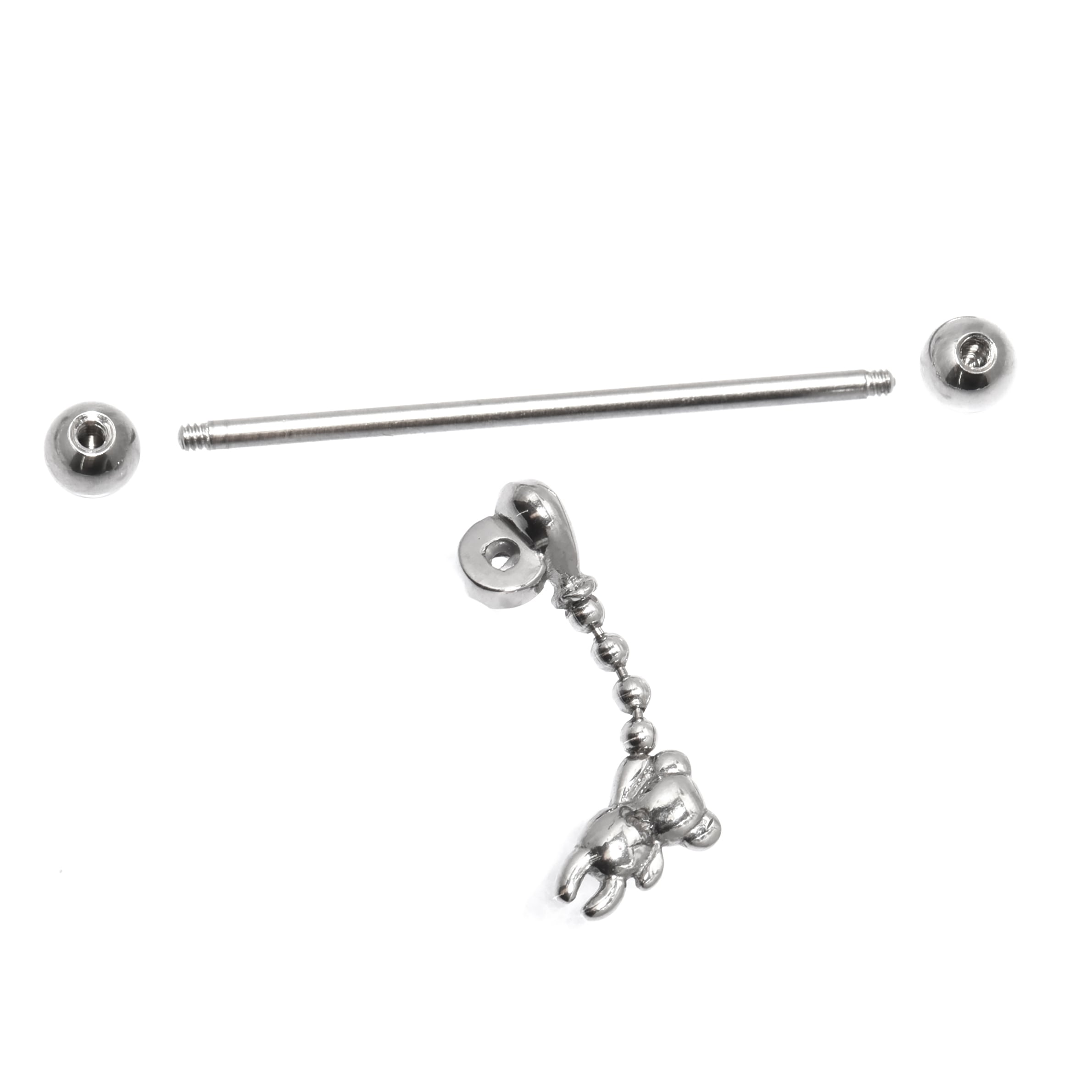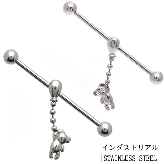 ・人気のくまさんシリーズのインダスピアスが新登場!ぶら下がったくまさんがとってもキュート♪後ろ姿は、愛しいです。正面は、くまさんの目がストーン入りでアクセントになりますょ。気分で向きを変えてみて。また、クマを外してシンプルなバーベルとしても使えます。
