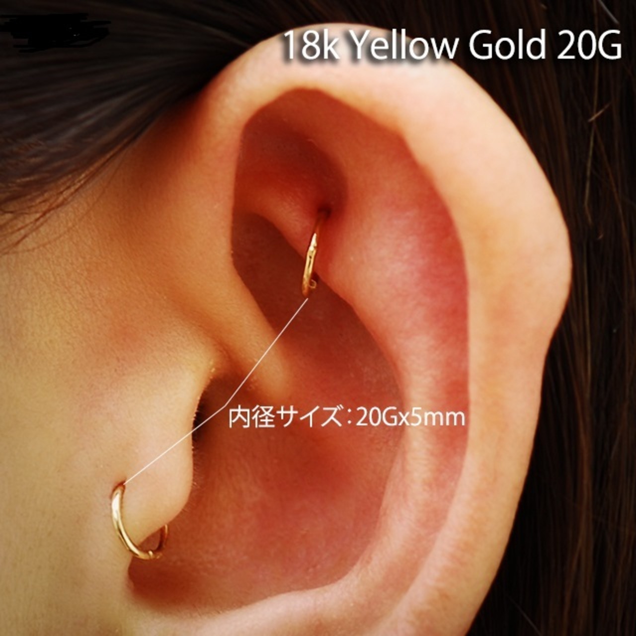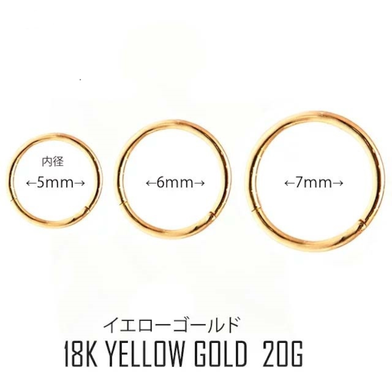 K18 20G 18金ゴールド イエローゴールド 金属アレルギー対応 セグメントリングピアス クリッカー リングピアス ロブ へリックス 軟骨ピアス ゴールドピアス