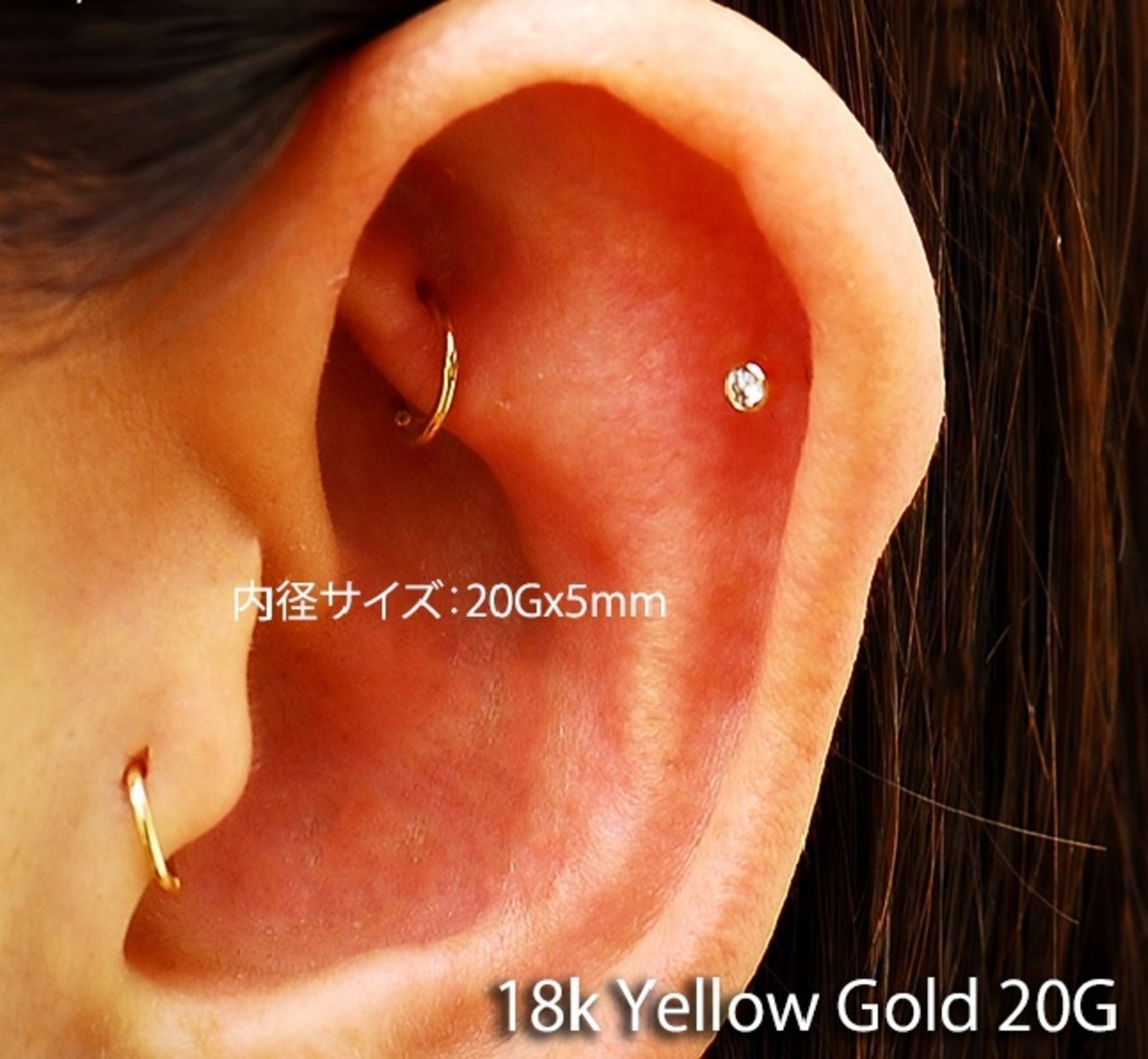 ・美しく品質がいい高級感ある18金ゴールドピアスです!イエローゴールドなので優しい色合いになっています。コーティングしてあるゴールドと違い腐食せず18Kなので耐アレルギー性も高いです。コレならカチッと手で開いたり閉じたり出来るのでストレスなく使用出来ます。シンプルな形もロブ、へリックス、ダイス、ロック、トラガスや、セプタム、鼻ピアス等の部位に使えます。高級品は気分もモチベーションアップにもなります。※6枚目のロブの装着画像の内径サイズは16Gの内径8mmです、20Gはこれより0.4mm細いです。 ※高額商品の為、ネコポス不可、送料無料で宅急便で発送します。 ※在庫切れの場合、次回の入荷が未定です。人気商品の為、入荷はしますが3ヶ月~半年以上かかる場合がございます。お問い合わせ頂きましても返答がお受けできません
