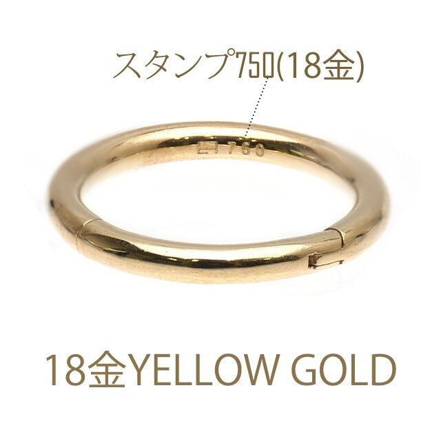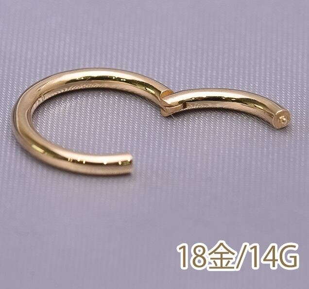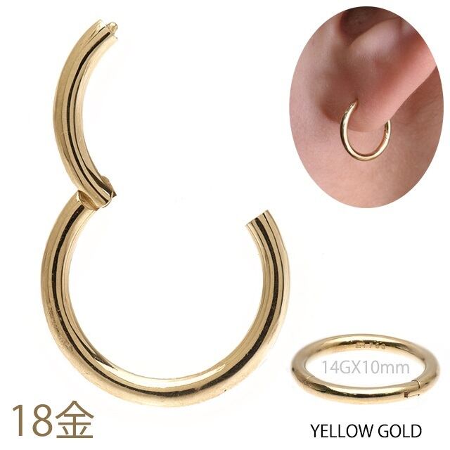 K18 14G 18金ゴールド 内径10mm イエローゴールド 金属アレルギー対応 セグメントリングピアス クリッカー リングピアス ロブ へリックス 軟骨ピアス ゴールドピアス