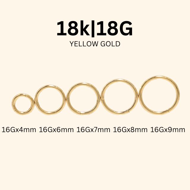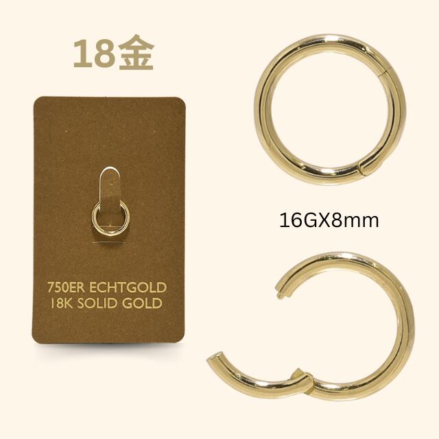 K18 16G 18金ゴールド 内径8mm イエローゴールド 金属アレルギー対応 セグメントリングピアス クリッカー リングピアス ロブ へリックス 軟骨ピアス ゴールドピアス | BONshape ボディピアス専門店