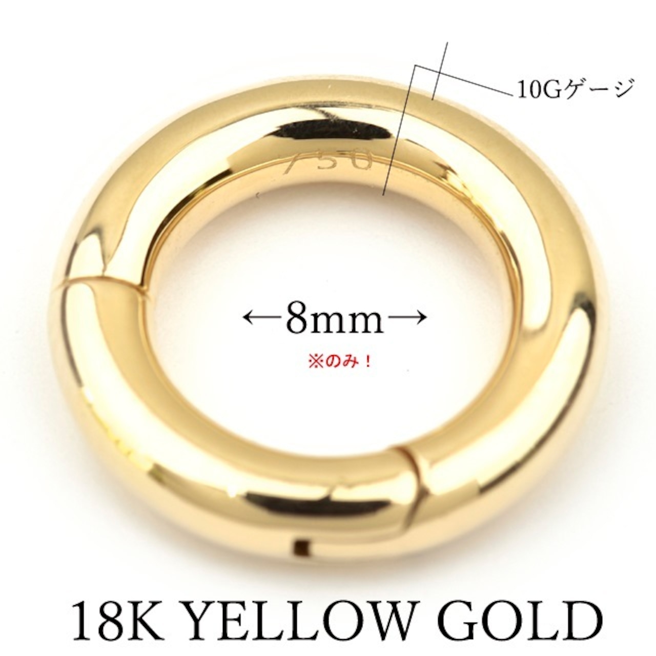 K18 10G 18金ゴールド 内径8mm イエローゴールド 金属アレルギー対応 セグメントリングピアス クリッカー リングピアス ロブ へリックス 軟骨ピアス ゴールドピアス