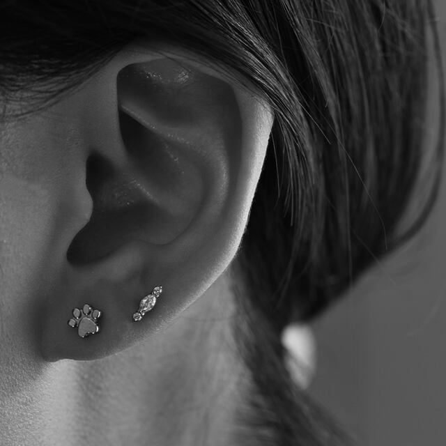 ・ぷにっと思わず触りたくなるような肉球デザインがとってもキュート。ラブレットの長さが選べるのでロブやヘリックス、インナーコンク、アウターコンク、トラガスなど軟骨ピアス等の部位にオススメです。何と言っても装着が挿すだけの簡単プッシュピアスタイプなのでネイルされている方や不器用な方にもオススメです。素材はチタンなのでお肌にも優しく金属アレルギーの方でも比較的安心して使えます。※たまにキャッチが緩くなったら画像のように調節して下さい。※キャッチは専用のプッシュピアスなら20G/18G/16G/14Gどれにもはまります、着ける部位でゲージサイズが異なるときは着けたいサイズのラブレットがあれば使えます。 ※ラブレットの下のフラットなディスク部分は入荷時期によりサイズが異なります予めご了承ください。