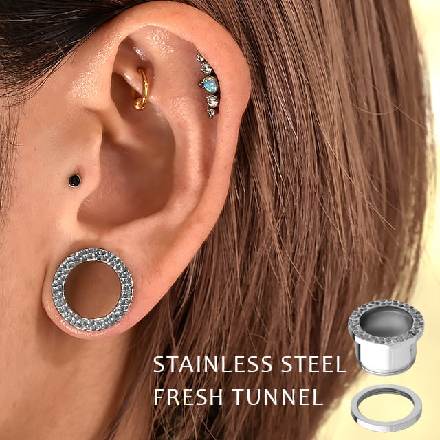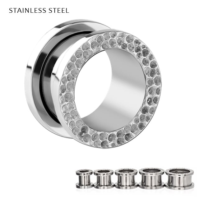 ・デザイン表面がデコボコしたデザインンピアスです。デコボコした部分の質感も楽しめるオシャレなトンネルピアスです。 遠くから見た時にもデザインが分かり大人っぽく決まります。