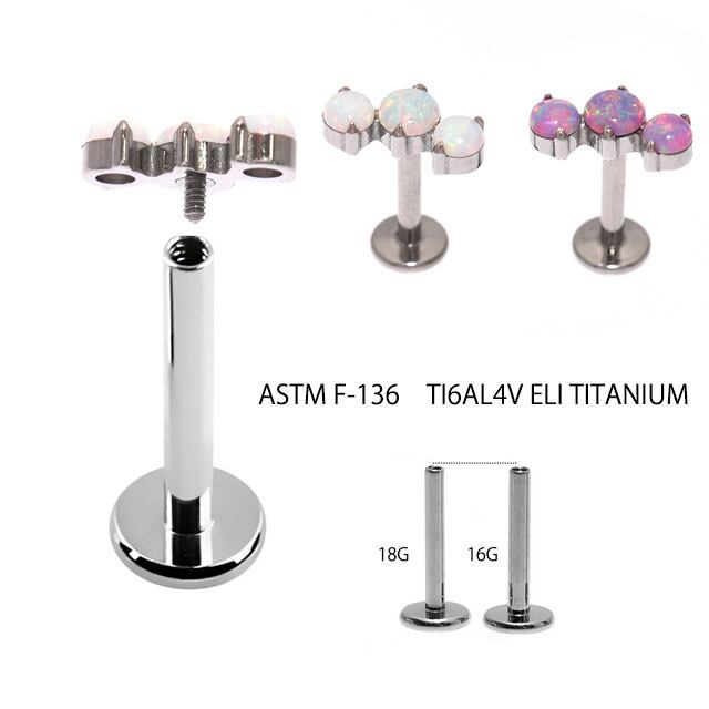 軟骨ピアス 18g 16g 全2色 オパール スリーポイント ジルコニアピアス 金属アレルギー対応 チタンピアス つけっぱなし インターナル ラブレットスタッド トラガスピアス ボディピアス | BONshape ボディピアス専門店