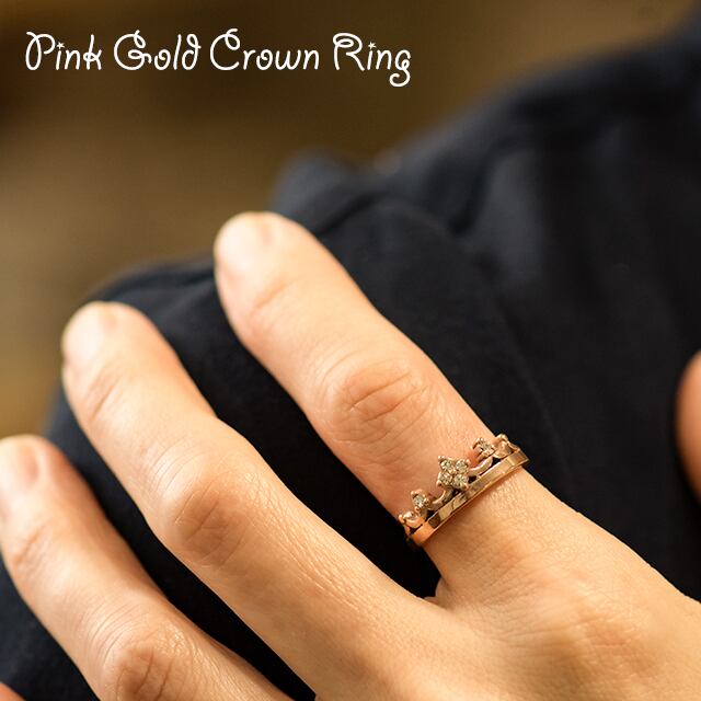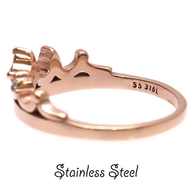 ステンレス リング 指輪 ピンクゴールド 王冠 ステンレスアクセサリー レディースアクセサリー ピンキーリング 金属アレルギー対応