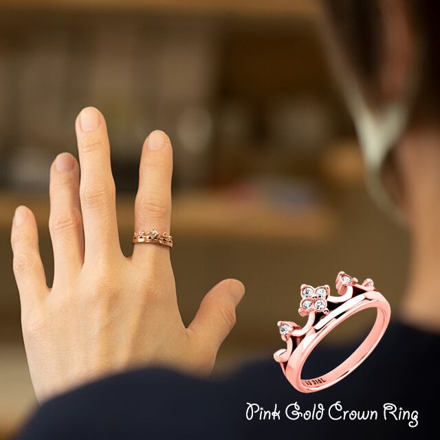 ・王冠モチーフはデザインの中でも人気です。 しかもピンクゴールドカラーで可愛さ倍増!クリスタルジルコニアの輝きがとても綺麗で高級感あり。ALLステンレスなのでお手入れも楽で金属アレルギーを起こしにくくお肌にも優しいです。 ※海外製品なので指輪のサイズが多少誤差があります、あらかじめご了承ください。