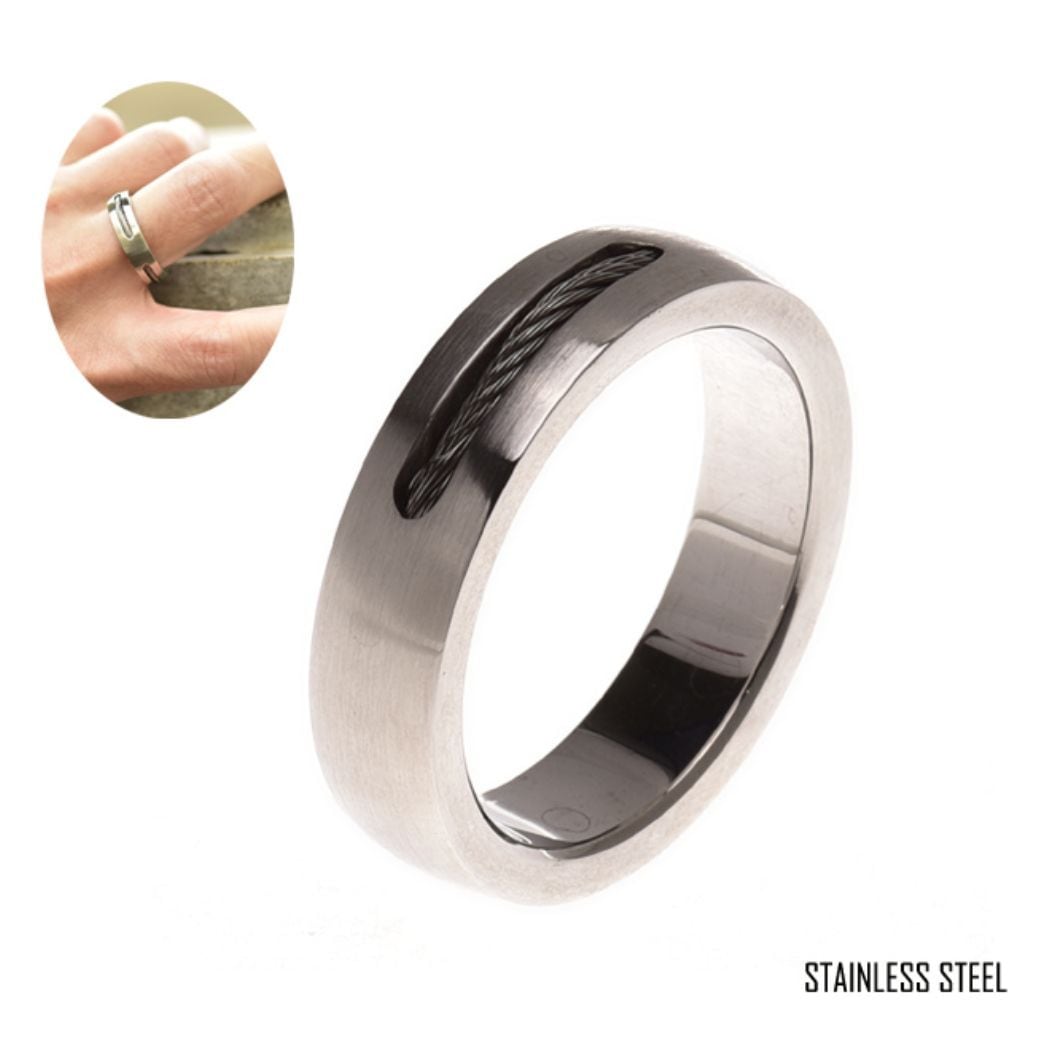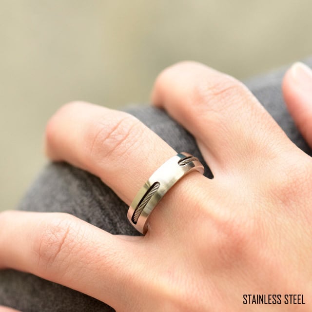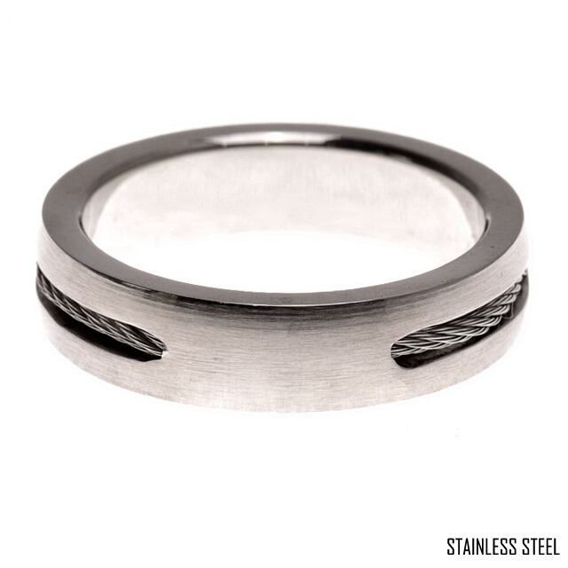 ・リングの2箇所には、ワイヤーロープが埋め込まれたオシャレで個性的なリングです。ステンレス素材なのでお肌にも優しく、シルバーみたいにお手入れする必要もないのでとても楽です。 ※海外製品ですので多少のサイズの誤差はあります、あらかじめご了承下さい。