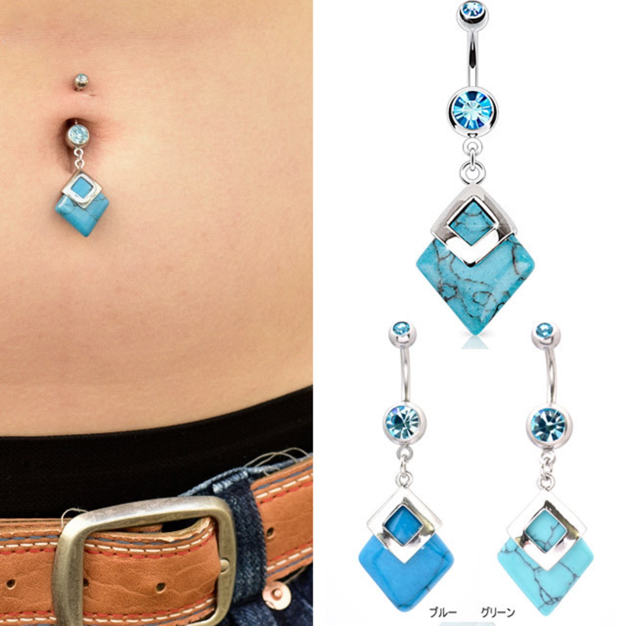 へそピアス 14G 人生の旅を守り 幸運をもたらす石 ターコイズ 天然石 パワーストーン ボディピアス