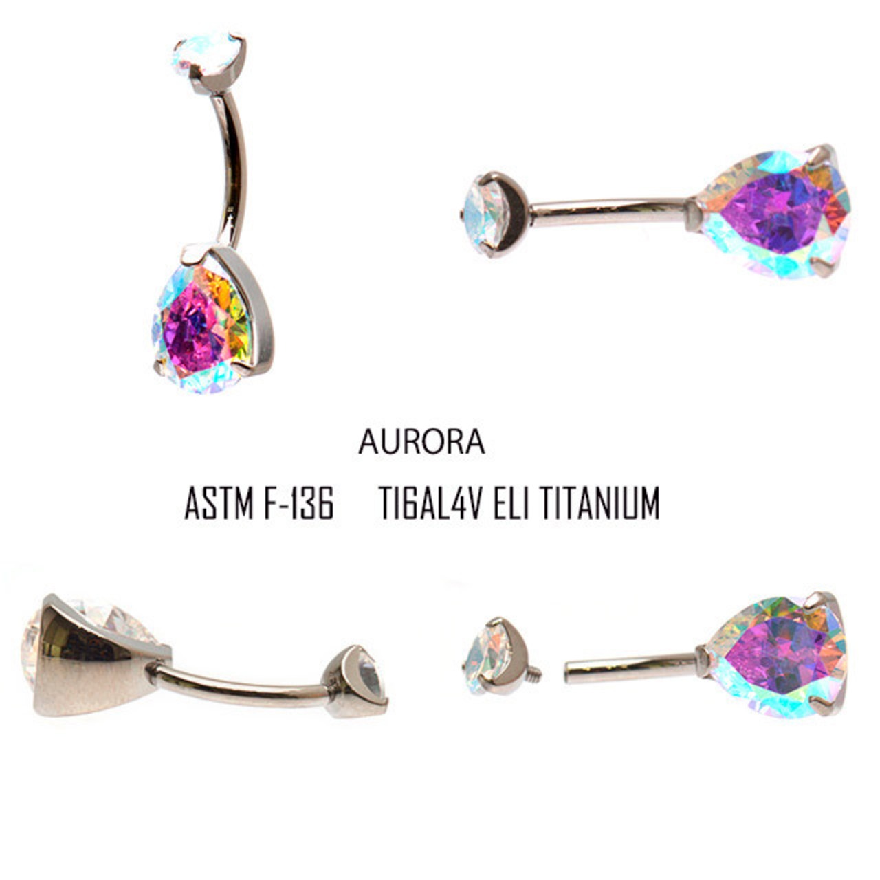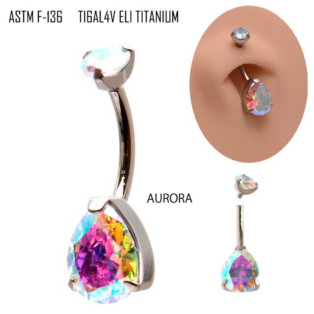 へそピアス 14G 金属アレルギー対応 オーロラ ティアドロップ チタンピアス インターナル プレゼントピアス ボディピアス