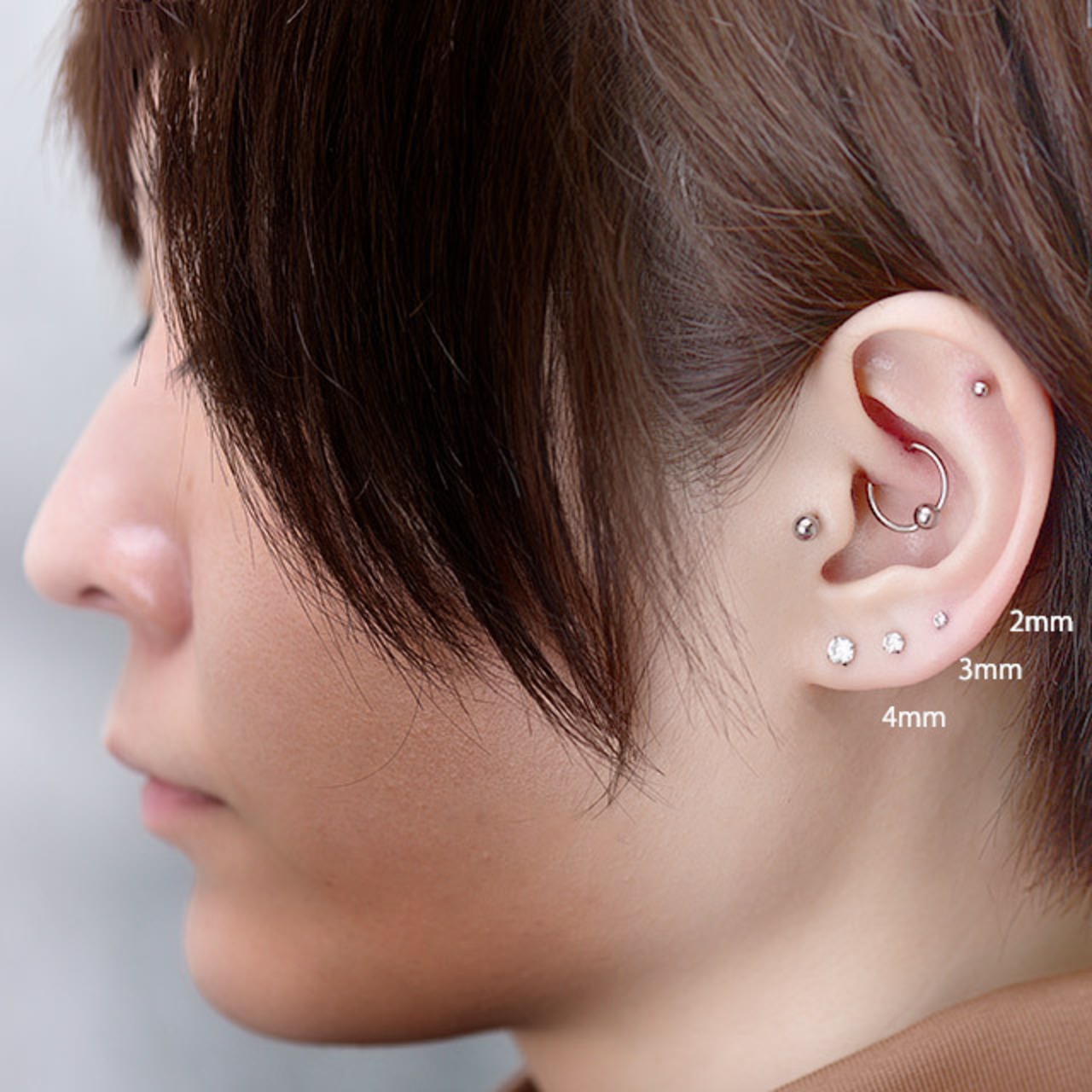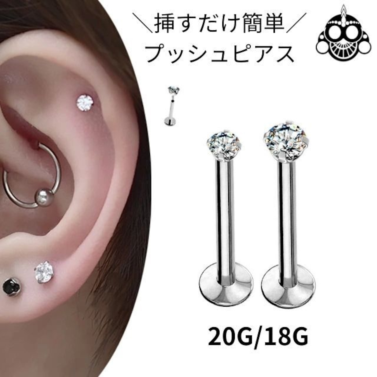 プッシュピアス 20g 18g 立爪 ジュエル ステンレスピアス つけっぱなし 片耳ピアス スタッドピアス ファーストピアス セカンドピアス ロブ 軟骨ピアス