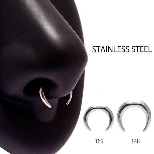 ・形がシンプルでどんなコーデにも合わせやすいです。キャッチが無く、ホールに通すだけなので着脱がしやすいですよ!ロブや軟骨、セプタムなどにおすすめです。※ホールに入る手前の部分が少し太くなっております。もし入りにくい場合は軟膏などを塗ると滑りが良くなり入りやすいです。