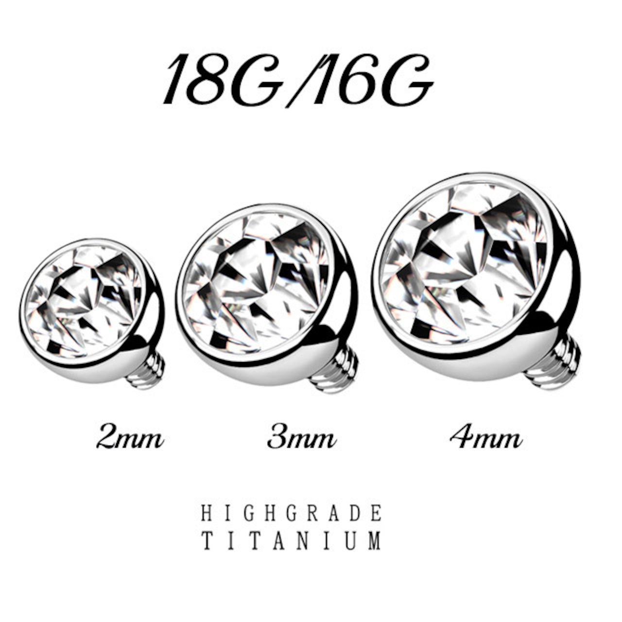 ・台座部分は、医療用タイタニアム(チタン)なのでお肌に優しく相当なアレルギーでない限り安心してお使い頂けます。サイズも3サイズから選べるので着ける部位や見せたいサイズ感で選べ、またクリスタルストーンも合わせやすくコーデのアクセントに取り入れやすいです。インターナル内ネジ式タイプになります。 ※パーツのみの販売です。18G用と16G用のインターナルバーベルにはまります、他店のは、はまらないものもありますので、ご注意ください。
