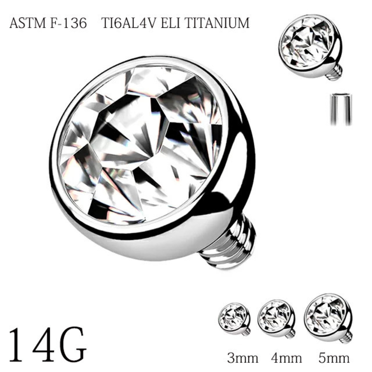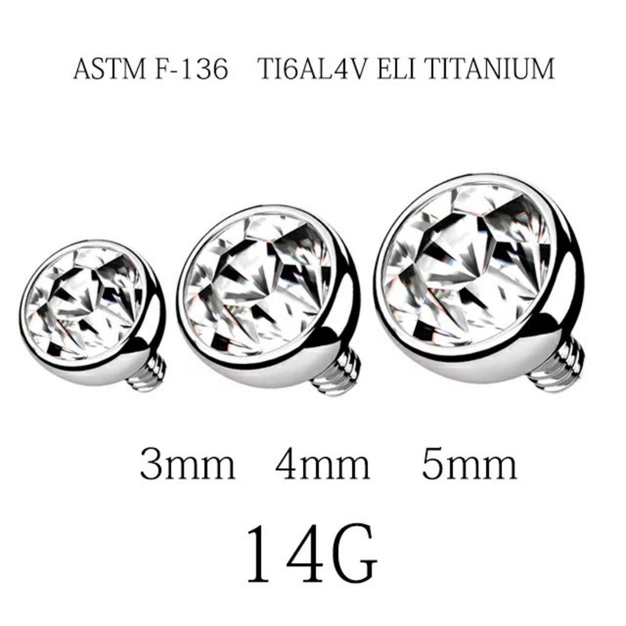 ・台座部分は、医療用タイタニアム(チタン)なのでお肌に優しく相当なアレルギーでない限り安心してお使い頂けます。サイズも3サイズから選べるので着ける部位や見せたいサイズ感で選べ、またクリスタルストーンも合わせやすくコーデのアクセントに取り入れやすいです。インターナル内ネジ式タイプになります。 ※パーツのみの販売です。14G用と12G用のインターナルバーベルにはまります、他店のは、はまらないものもありますので、ご注意ください。