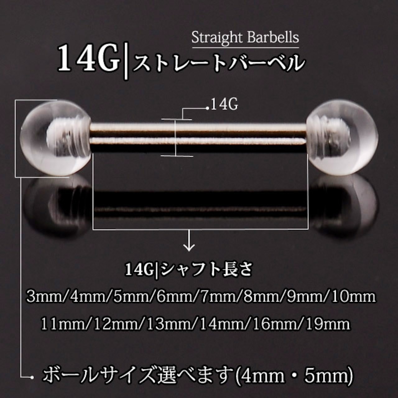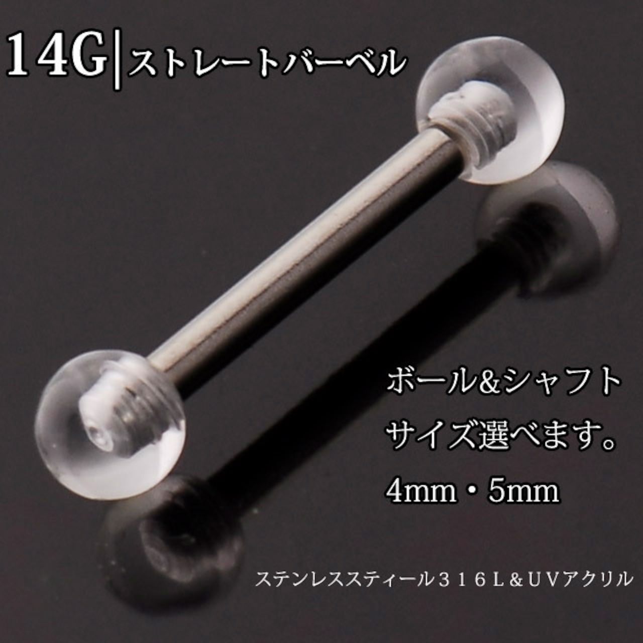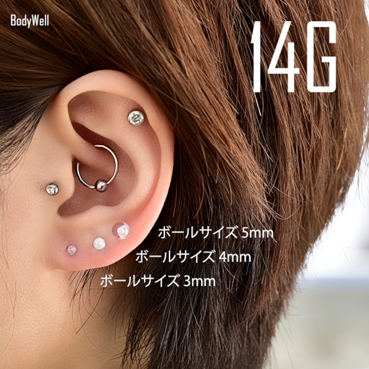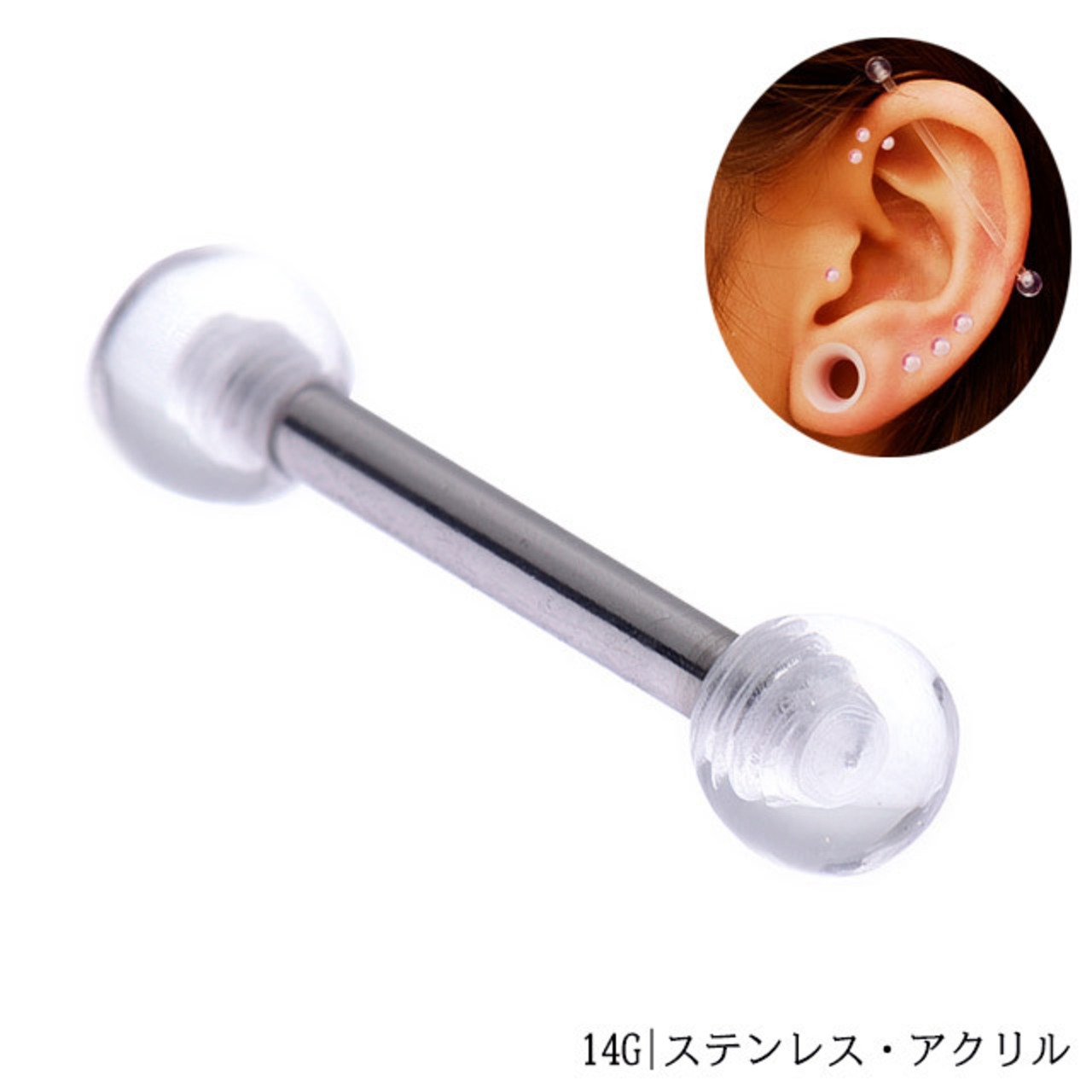 ボディピアス 14G 透明ピアス シークレット 隠せるピアス クリアボール ステンレスシャフト ストレートピアス ロブ