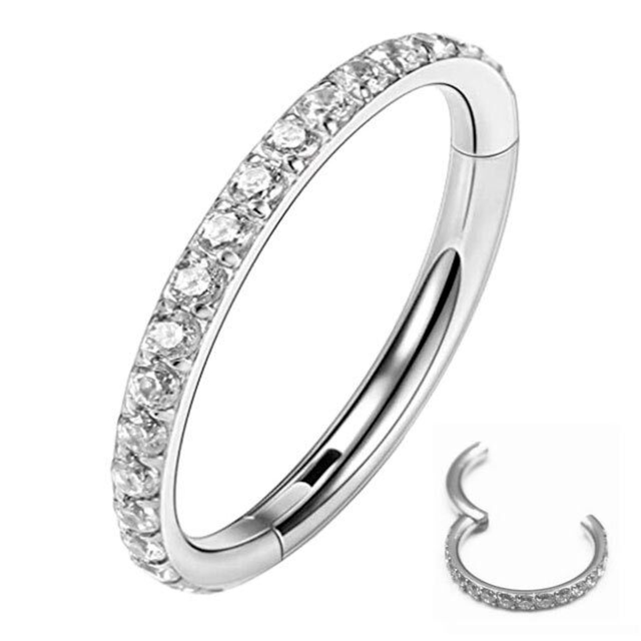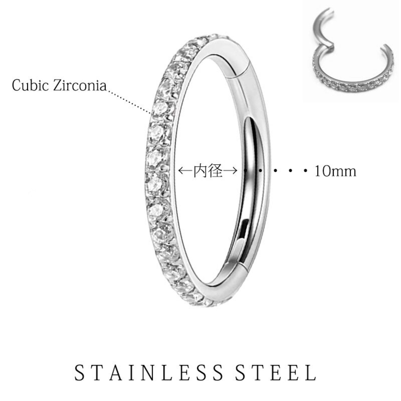 リングピアス 16G 14G ストーンを贅沢に使用 クリスタルジルコニア ワンタッチで装着 セグメントリング クリッカー 軟骨ピアス へリックス インナーコンク ロブ ボディピアス