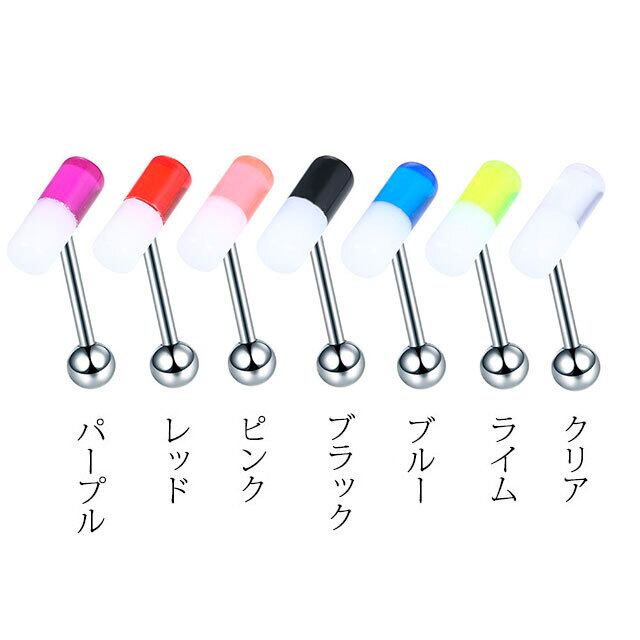 舌ピアス 14G カラバリ豊富 全7色 カプセル 錠剤 ストレートピアス ロブ 軟骨ピアス ヘリックス インナーコンク アウターコンク ボディピアス アクリルピアス | BONshape ボディピアス専門店