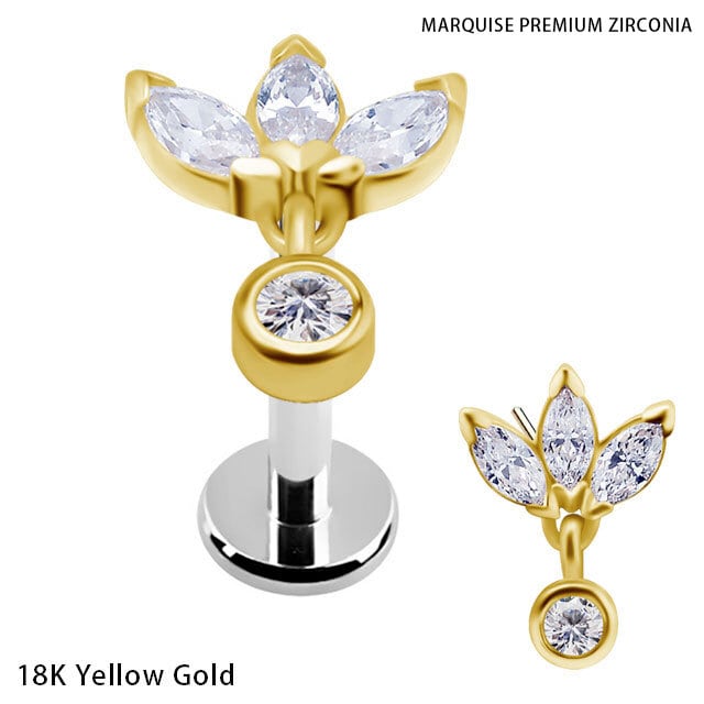挿すだけ装着 18金ゴールド プッシュピアス 20G 18G 16G 14G Marquise マーキス 18K プレミアムジルコニア チタンピアス 金属アレルギー対応 ラブレットスタッズ ボディピアス ロブ 軟骨ピアス | BONshape ボディピアス専門店