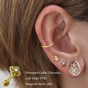 ・普通のコーティングよりも24金GOLDコーティングなので輝きあり、とても綺麗です。アクセントになるクリスタルジルコニアも高級感があって華やかに決まりますよ。シャフトサイズも2サイズから選べるのでホールの厚みや部位でお選びください。 ※他のバーベルとネジは合いませんのでご注意ください。