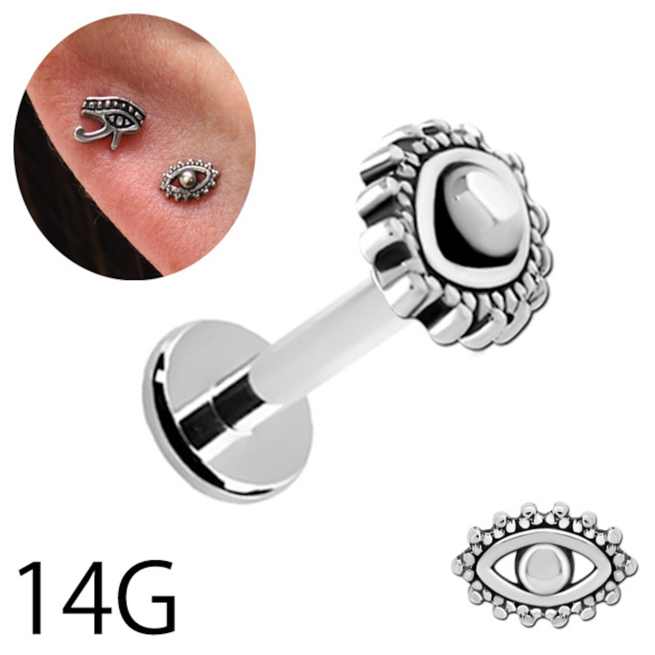 トラガスピアス 14G EYEピアス 目玉 インターナル ラブレットピアス ロブ へリックス インナーコンク ステンレスピアス ボディピアス つけっぱなし