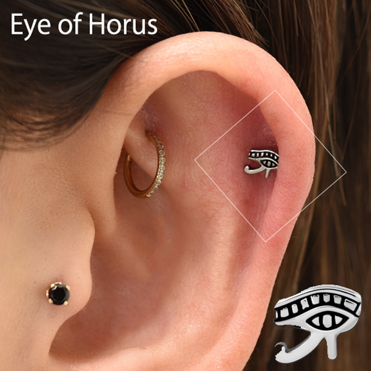 トラガスピアス 14G EYE OF horus ホルスの目 インターナル ラブレットピアス ロブ へリックス インナーコンク ステンレスピアス ボディピアス つけっぱなし