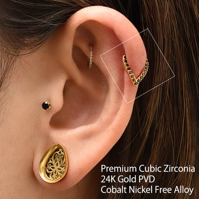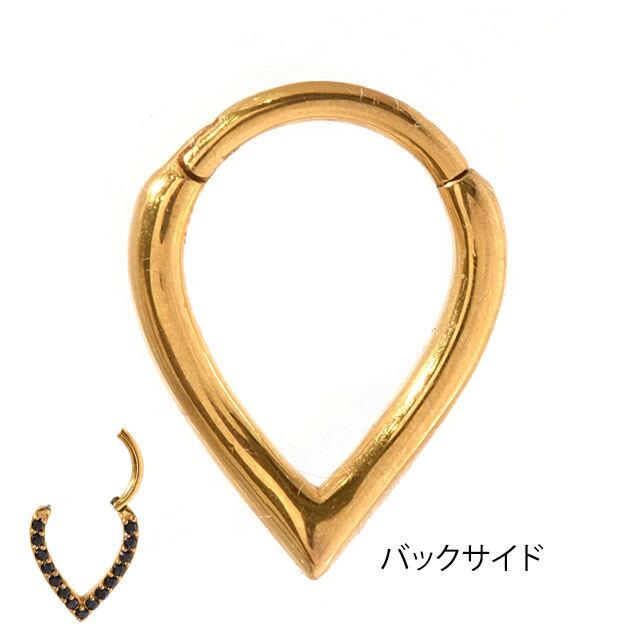 ・ティアドロップの形がオシャレなリングピアスです。デザインはカーブがかっているのでヘリックスに装着すると耳に沿うように着き、ロブなどは内側にカーブされて身につきます。形の変化があるだけでグッとオシャレ度UP。 ワンタッチでカチッと開閉でき簡単に取り付けることが可能です。キャッチを無くす心配もありません。 リングピアスが苦手な方にもオススメです。 素材はコバルトクロム合金で高い耐食性と驚くべき強度があり滑らかで光沢があるニッケルフリーです。ニッケルフリーとは金属アレルギーを引き起こしにくい素材です。金属アレルギーの方も比較的安心してご使用いただけます。