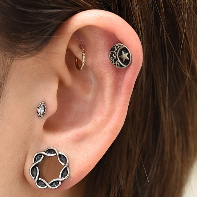 ・人気のモチーフが組み合わさってオシャレでかっこいいです。ゴム以外、ALLステンレスなのでお肌に優しくお勧めです。大きめのデザインがコーデのアクセントになってイメチェン出来ます。ロブやヘリックス、インナーコンク、軟骨ピアスにオススメです。