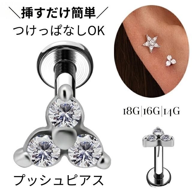 挿すだけ装着 プッシュピアス 20G 18G 16G 14G トリニティ ノンニッケル プレミアムジルコニア チタンピアス 金属アレルギー対応 ラブレットスタッズ ボディピアス つけっぱなし | BONshape ボディピアス専門店