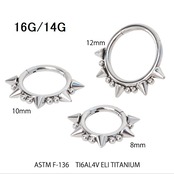 ・スパイクのイカツイデザインがかっこよく決まります。内径サイズも3タイプから選べるので、ロブやセプタム、ヘリックス、インナーコンクなど軟骨ピアスなどいろんな部位に着けれます。素材は医療用タイタニアム(チタン)で、丈夫で軽く相当なアレルギーでない限りアレルギーの方でも安心してお使い頂けます。 ワンタッチでカチッと開閉でき簡単に取り付けることが可能でキャッチを無くす心配もいりません。 リングピアスが苦手な方にもオススメです。