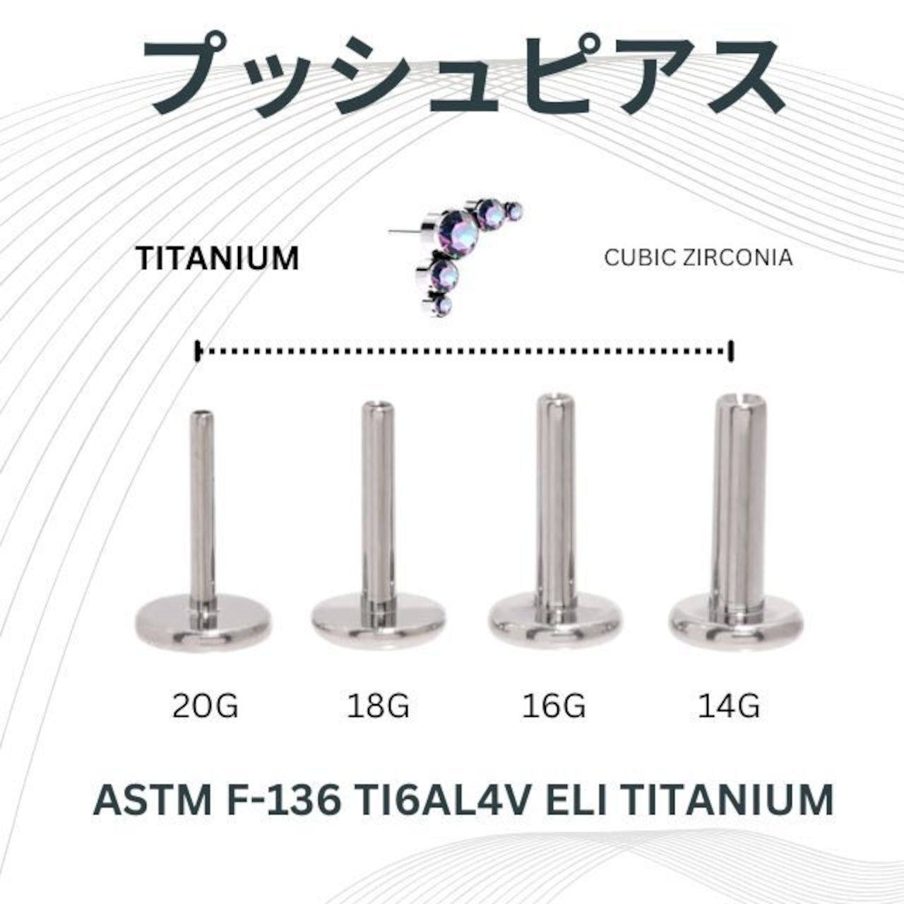 ・5つのストーンが並んだファイブポイントデザインがオシャレ!ヴィトレイルジルコニアはミステリアスで大人っぽく、クリスタルは上品で合わせやすいです。カーブがかっているのでヘリックスやインナーコンクにオススメです。台座、ラブレットは、医療用タイタニアム(チタン)で、お肌に優しく相当なアレルギーでない限り安心してお使い頂けます。 何と言っても装着が挿すだけの簡単プッシュピアスタイプなのでネイルされている方や不器用な方にもオススメです。ラブレットはチタン素材なのでお肌にも優しく金属アレルギーの方でも比較的安心して使えます。※たまにキャッチが緩くなったら画像のように調節して下さい。※ラブレットの下のフラットなディスク部分は入荷時期によりサイズが異なります、予めご了承ください。