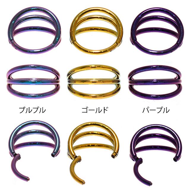 ワンタッチピアス 16G チタンピアス 全3色 3連 クリッカーピアス トラガス インナーコンク ロブ へリックス セプタム 軟骨ピアス リングピアス ボディピアス | BONshape ボディピアス専門店