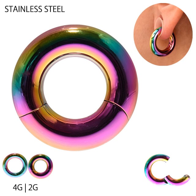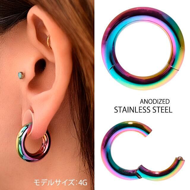 ワンタッチピアス リングピアス 4G 2G レインボーチタン コレなら簡単カチッと装着 セグメントリング クリッカー ボディピアス ステンレスピアス 拡張ピアス