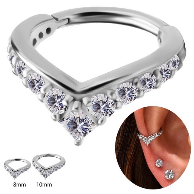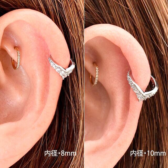 ・ストーンはプレミアムジルコニアを使用しており天然ダイヤモンドと同じような輝きを持ちとても綺麗です。 ティアラのようなデザインが上品で大人っぽく決まります。内径サイズも2タイプから選択出来るのでヘリックスやインナーコンクにオススメです。