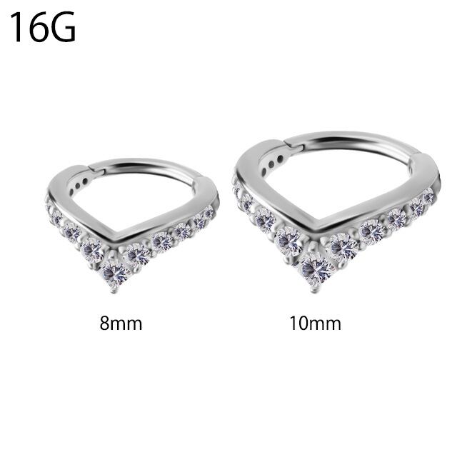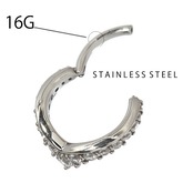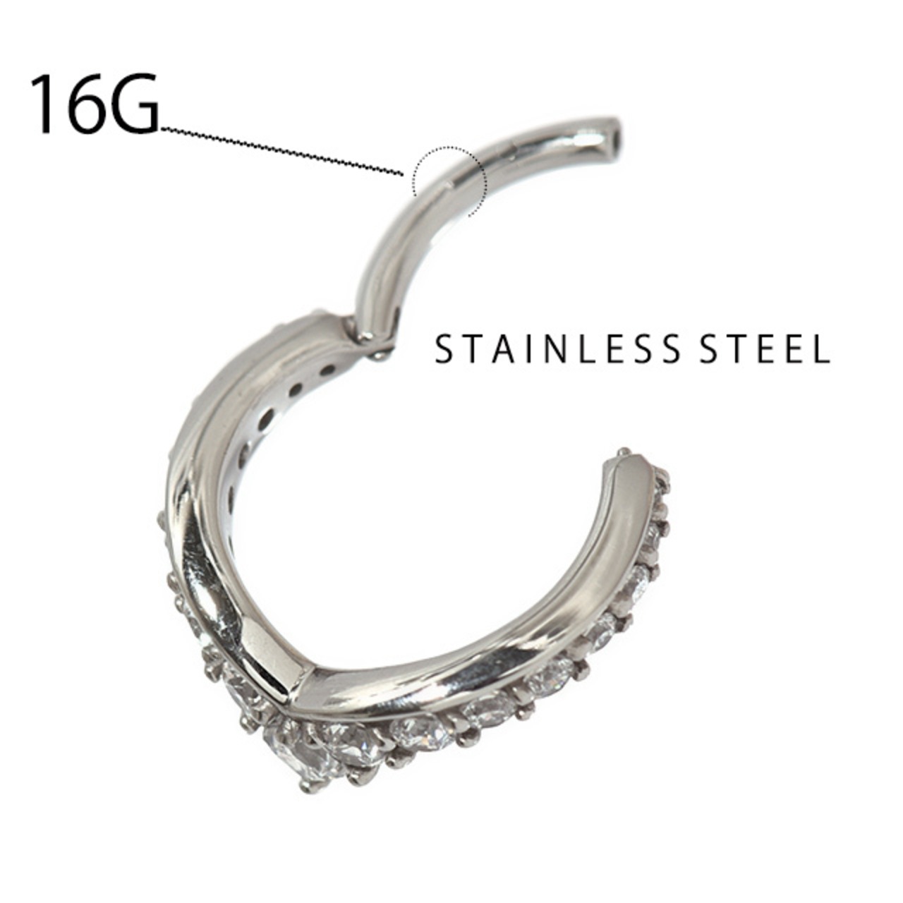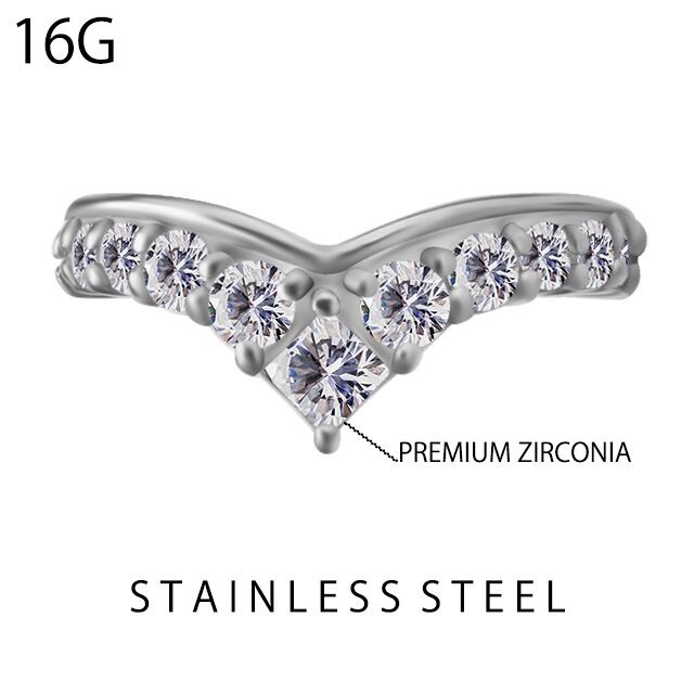 ワンタッチピアス 16G ステンレスピアス ティアラ プレミアムジルコニア ワンタッチで装着 セグメントリング クリッカー 軟骨ピアス へリックス インナーコンク ボディピアス