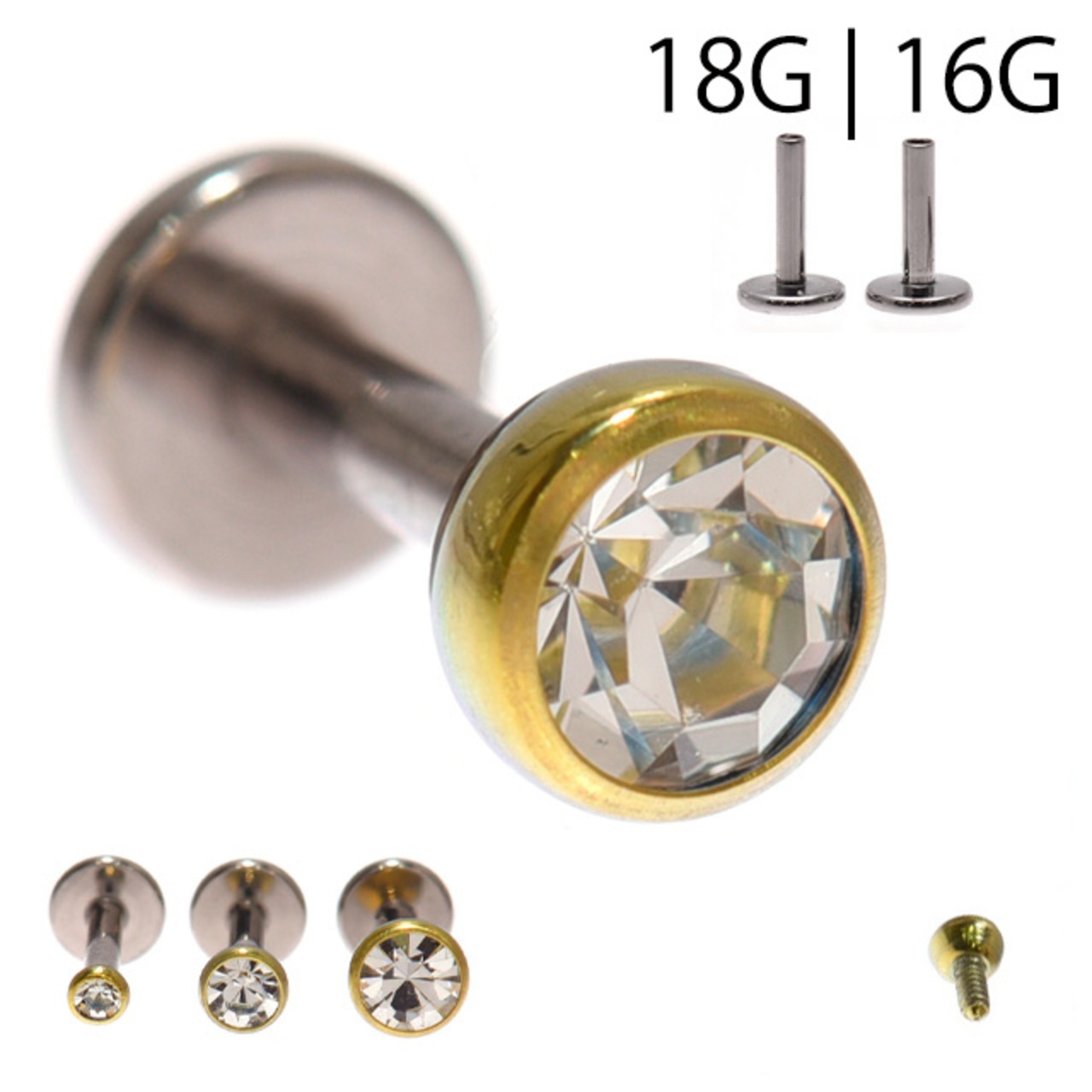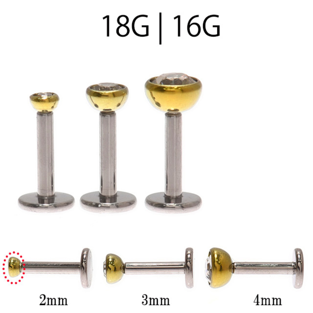 金属アレルギー対応 18G 16G ゴールド クリスタル ジェムズボール チタンピアス インターナルラブレット ロブ トラガス ヘリックス 軟骨ピアス ボディピアス