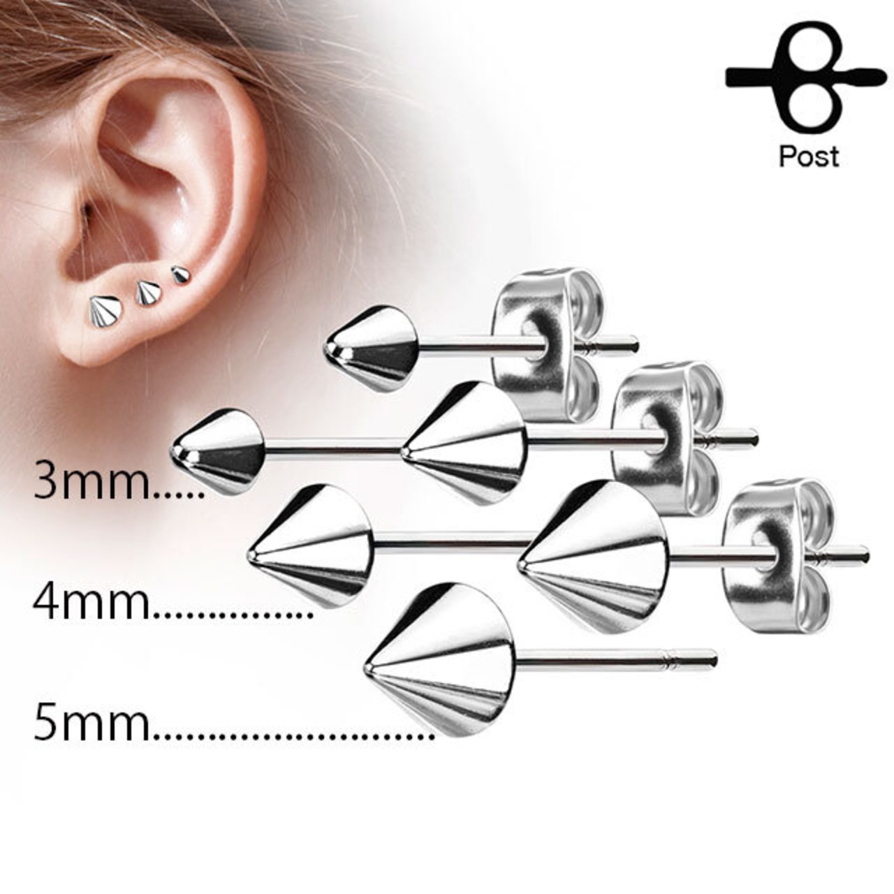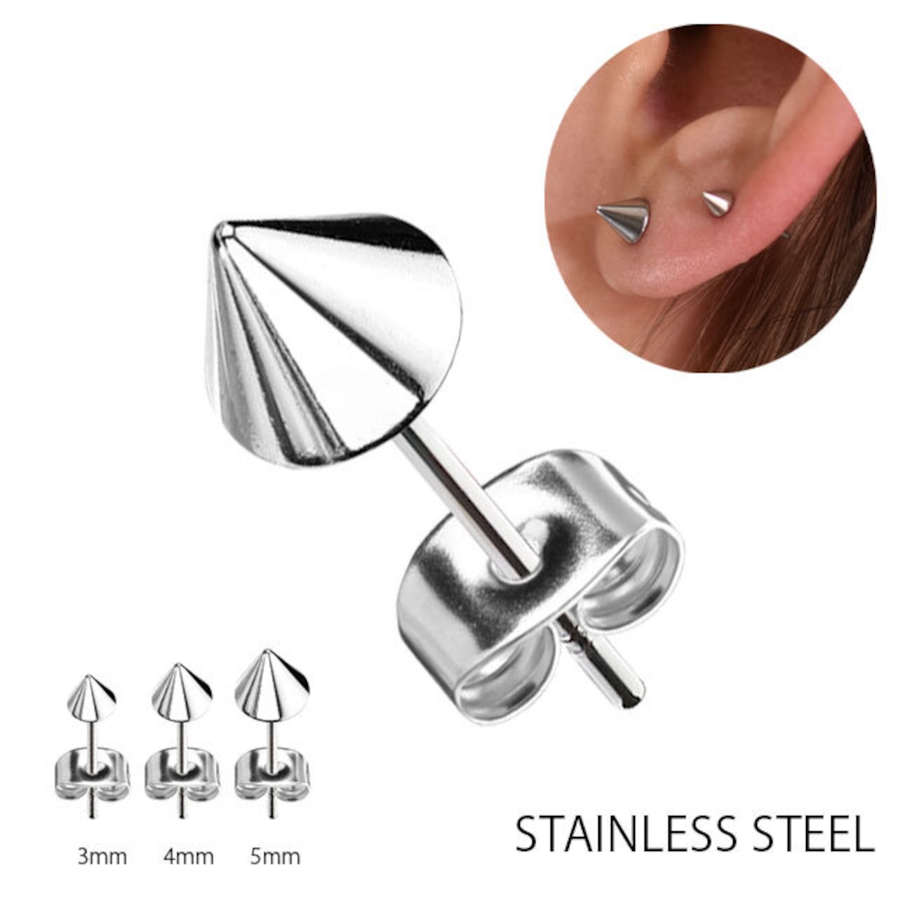 ピアス 20G 選べるサイズ スパイク コーン ステンレスピアス 片耳ピアス ロブ 軟骨ピアス インナーコンク