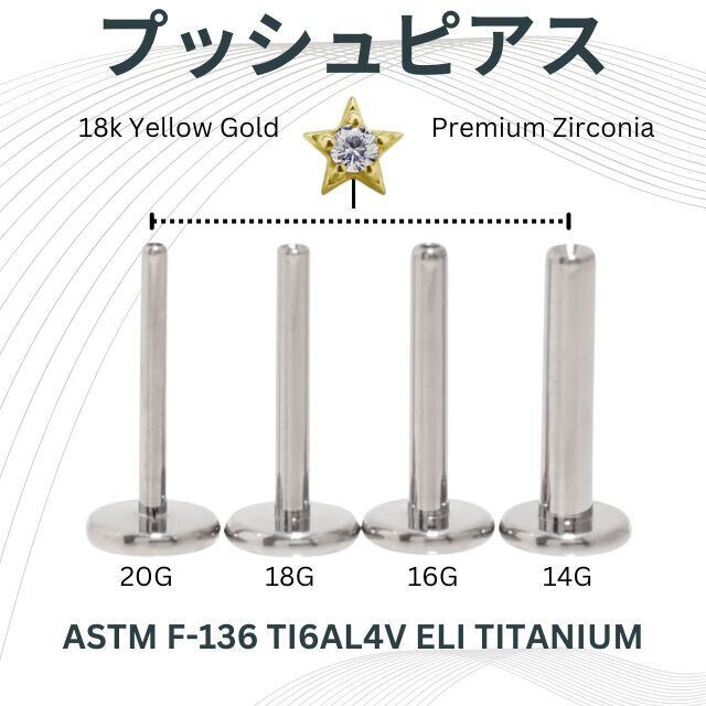 挿すだけ装着 プッシュピアス 20G 18G 16G 14G MINI スター 星ピアス 18K 18金ゴールド プレミアムジルコニア チタンピアス 金属アレルギー対応 ラブレットスタッズ ボディピアス ロブ 軟骨ピアス | BONshape ボディピアス専門店