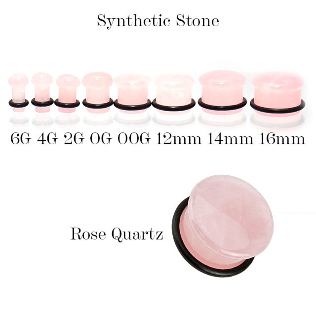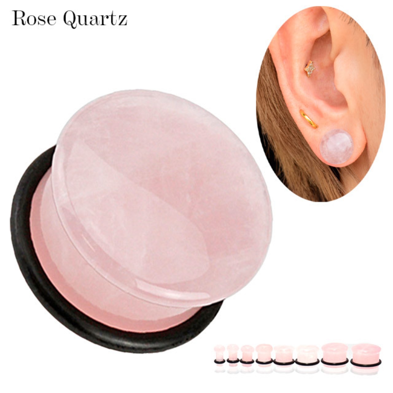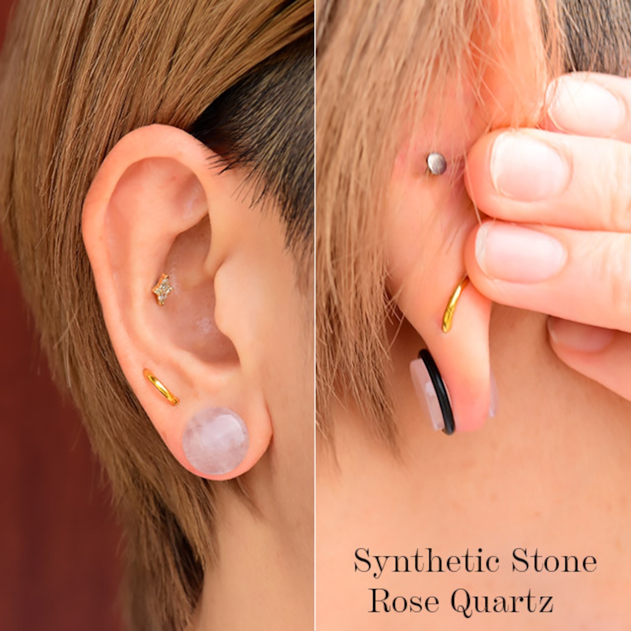 天然石ピアス 6g ローズクォーツ 拡張ピアス ロブ 軟膏ピアス パワーストーンピアス ボディピアス