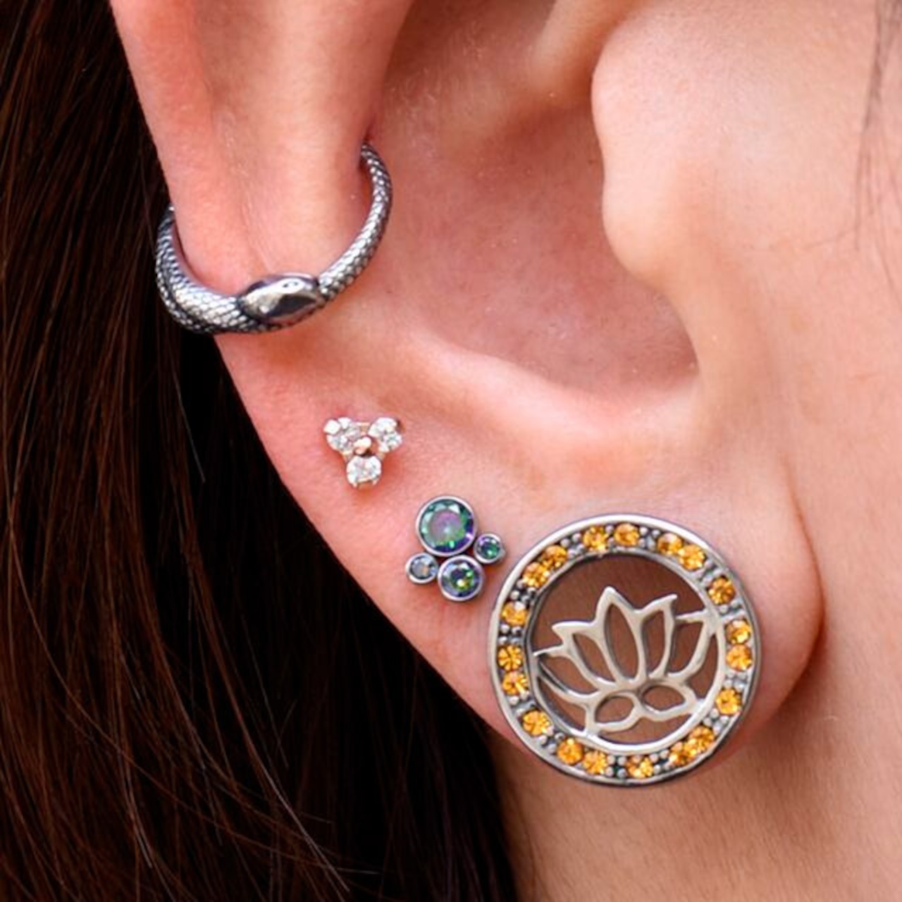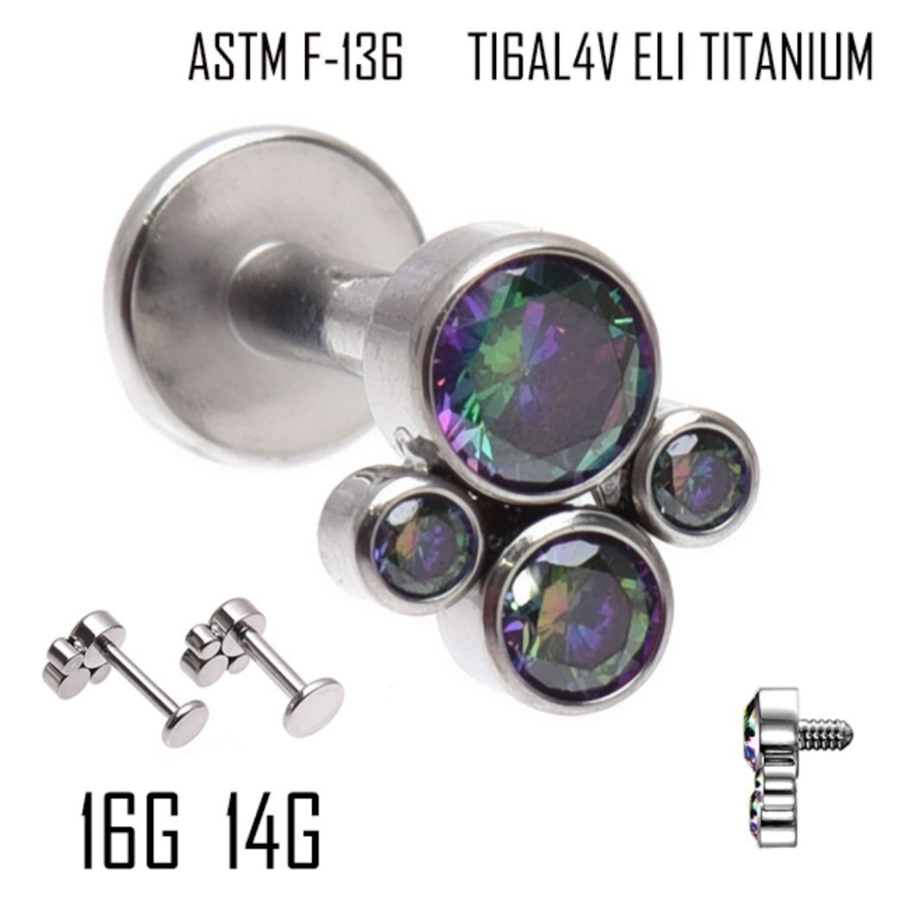 ・あまりない色合いヴィトレイルがとても綺麗です。当店人気のクルスターデザインで大人可愛く決まります。台座、ラブレット部分は、医療用タイタニアム(チタン)で、丈夫で軽く相当なアレルギーでない限りアレルギーの方でも安心してお使い頂けます。 ロブやヘリックス、トラガス、インナーコンク、アウターコンクなど軟骨ピアスにもオススメです。 ※ラブレットのディスクサイズはメーカーの入荷時期によりばらつきがあります、あらかじめご了承下さい。